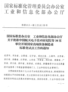 國(guó)家標(biāo)準(zhǔn)委及工信部批復(fù)我公司開(kāi)展國(guó)家高端裝備制造業(yè)標(biāo)準(zhǔn)化試點(diǎn)工作
